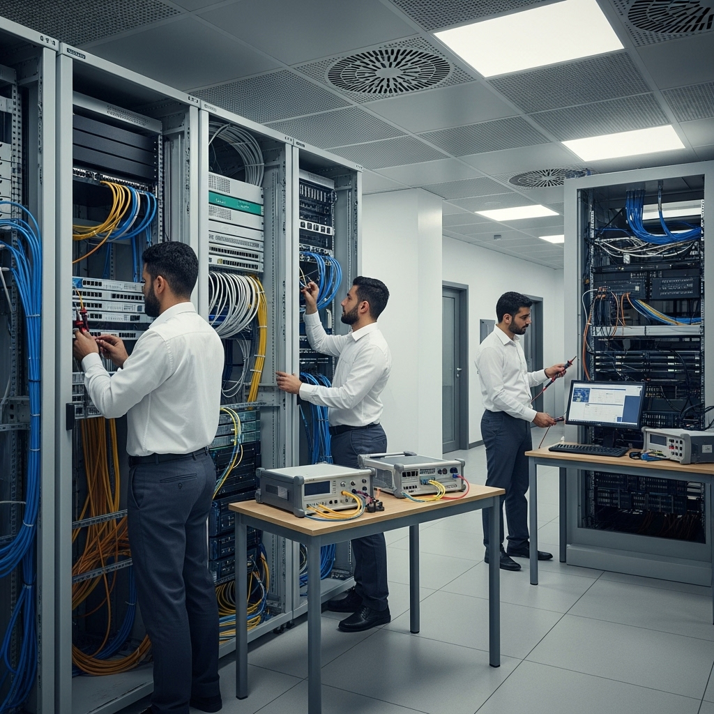 نقوم بتنفيذ مشاريع الاتصالات بكفاءة عالية تضمن استقرار الشبكة، وسهولة التوسع، وتحقيق أفضل أداء تشغيلي.